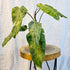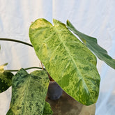 This rare Philodendron Whipple Way Marble looks like the mix of Philodendron Paraiso Verde and Philodendron Domesticum. It has similar features to very pale green variegated leaves of the Paraiso and long arrow-shaped leaves of the Domesticum. The new leaf is very pale, and then it will slightly turn darker.
