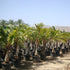 A small, bulbous palm tree with a thick trunk and a crown of fronds.