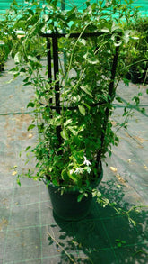 The Jasmine Climber is a popular ornamental plant that is often grown in gardens, balconies, and terraces. It is a fast-growing plant that requires support to climb, such as a trellis or a wall. The plant prefers well-drained soil and partial shade, although it can also tolerate full sun. It blooms in the summer and fall, producing clusters of flowers that can last for several weeks.