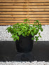 Many gardeners choose to grow mint in containers. An unglazed clay container with ample drainage holes is best because it will allow excess soil moisture to escape through the holes and the container walls. Use a quality potting mix, and make sure to keep the soil moist but not soggy.