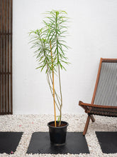 The Thevetia is a small to medium-sized evergreen tree that belongs to the Apocynaceae family. It is native to Central and South America, but it is now widely cultivated in tropical and subtropical regions around the world. The plant can grow up to 60cm to 120cm in height and has a dense, bushy habit with glossy, dark green leaves that are lance-shaped and pointed at the tip.