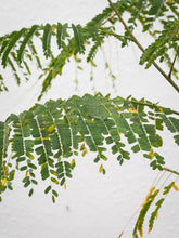 The Flame Tree is known for its striking display of bright red-orange flowers that bloom in clusters during the summer months. The flowers are large, with five petals and a prominent stamen, and they attract a variety of pollinators, including bees, butterflies, and birds. The tree's leaves are fern-like and can grow up to 50 cm long, with each leaflet being about 2-3 cm long.
